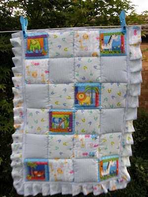 My daughters lovely friend is going to be an Aunty in the next week or so and had asked my to make a pram quilt for the new baby. I have had a collection of baby boy fabric stashed away for quite some time. So I set to and here is what I made for here.